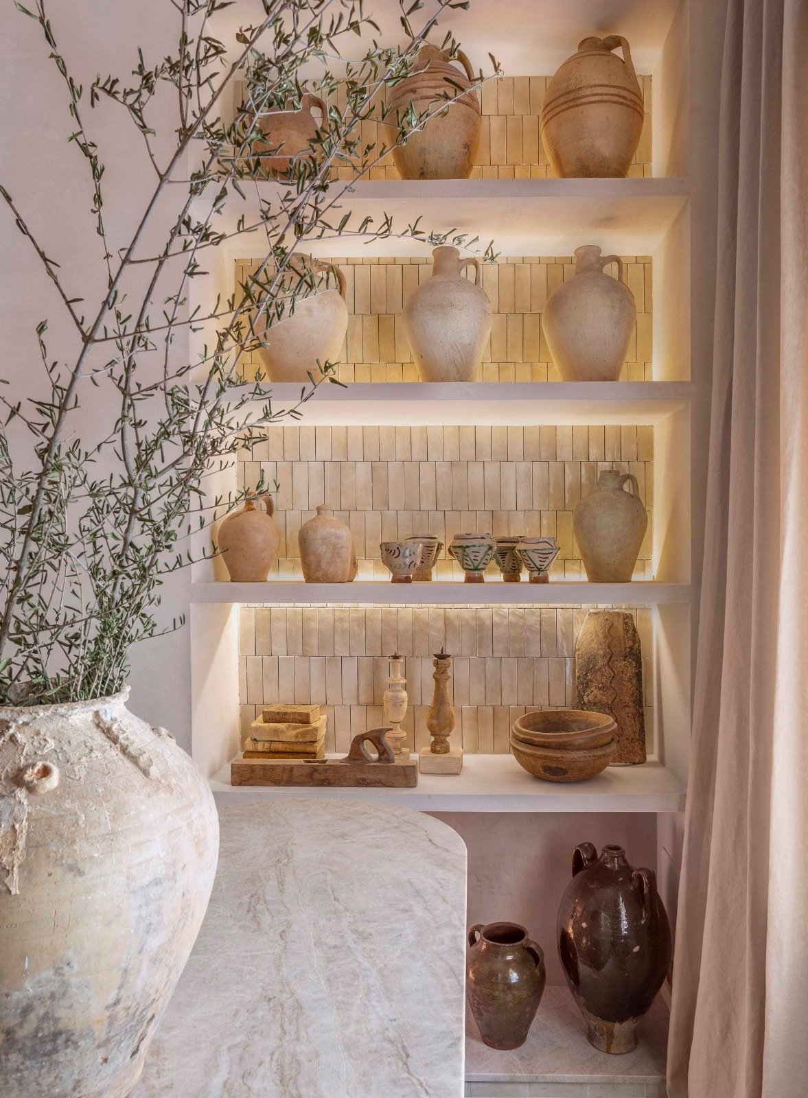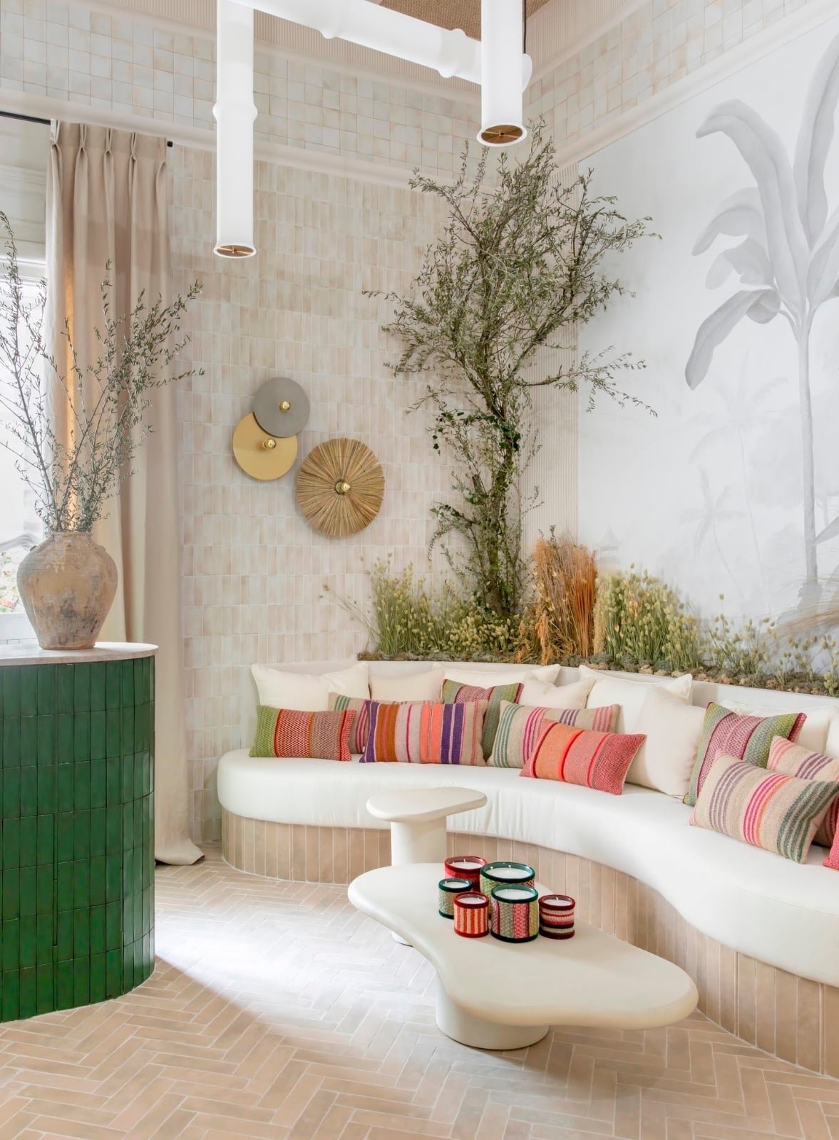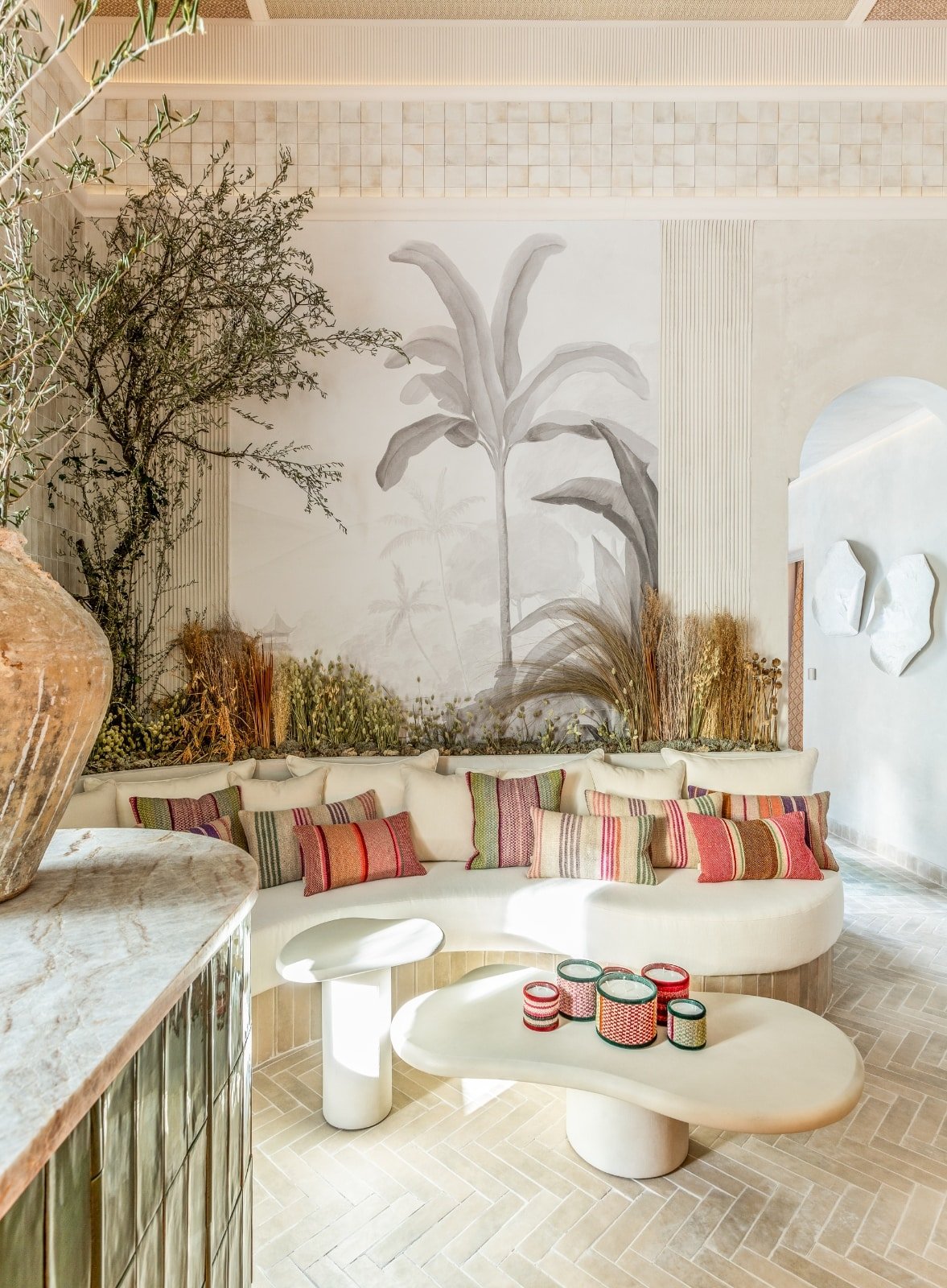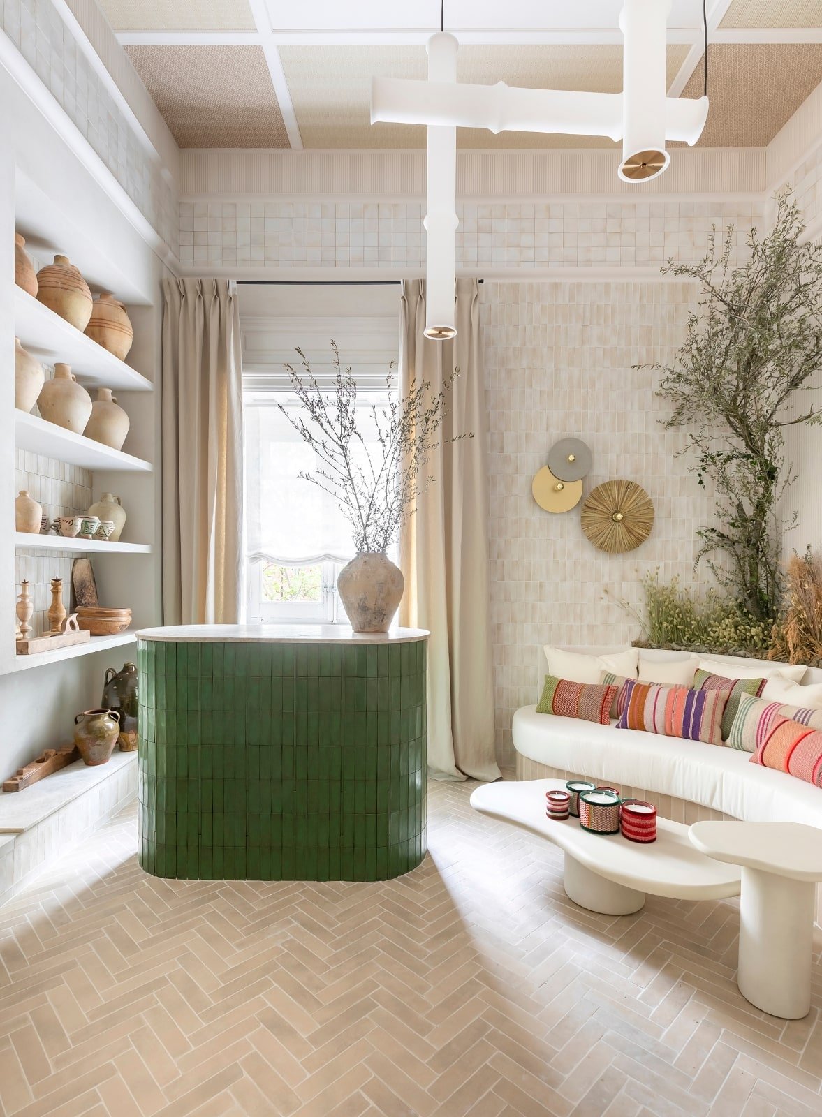 La cerámica es el mayor lujo sostenible que tenemos a nuestro alcance, un material a priori simple, que podemos trabajar de diferentes formas, texturas y colores, dando lugar a una paleta calmada y natural, basada en nuestras raíces, en cada rincón una historia, en cada pieza su propia alma. Las curvas nos abrazan y nos invitan a pasar tiempo de calidad, la vegetación se apodera del interior y desdibuja los límites con el exterior haciendo que sea the place to be.